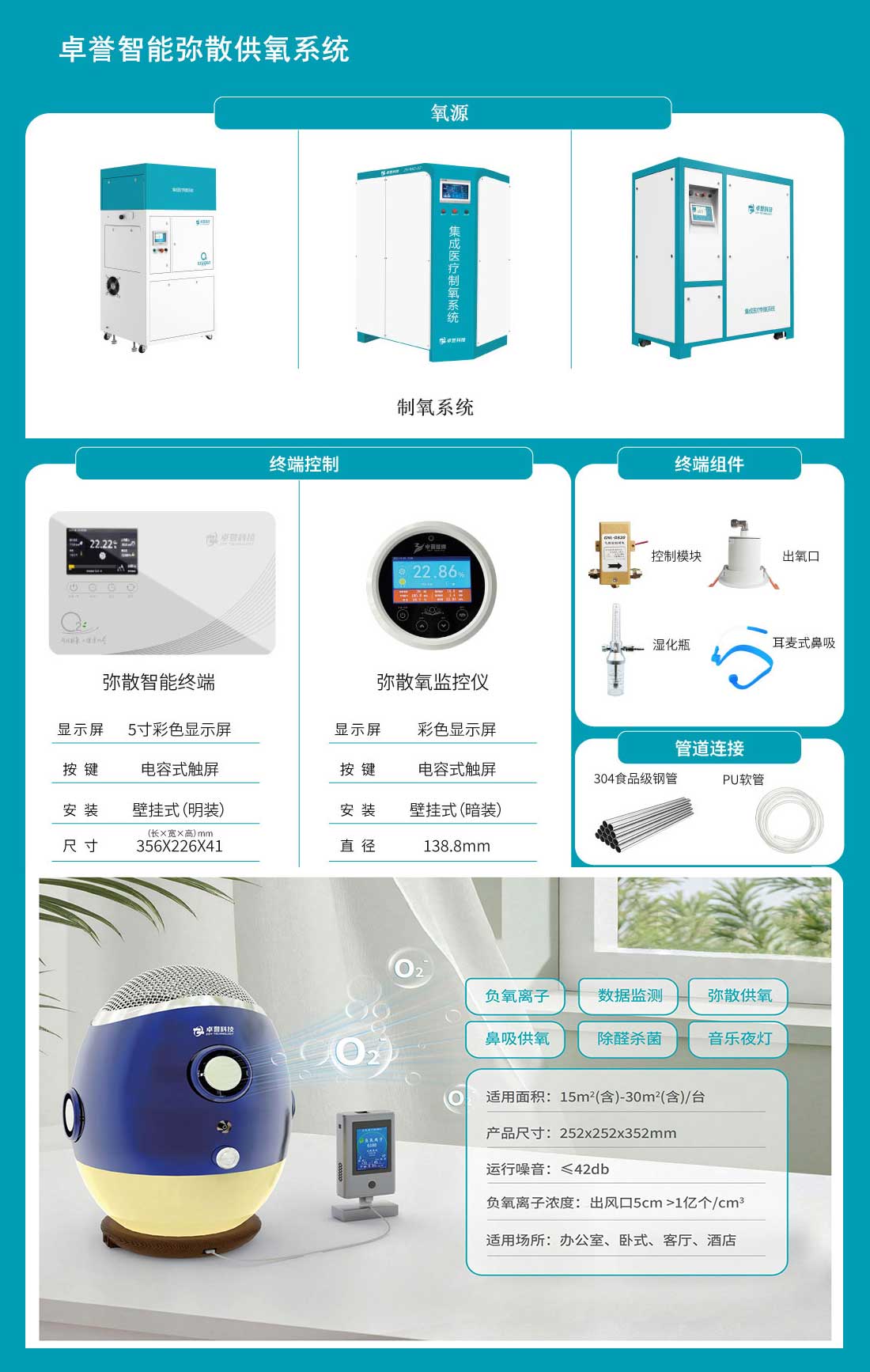 卓譽全屋智能彌散供氧系統(tǒng),為高原酒店、辦公室、臥室、隧道、健身會所、康養(yǎng)中心等場所補氧,提供富氧環(huán)境,讓呼吸更舒適健康的氧吧。