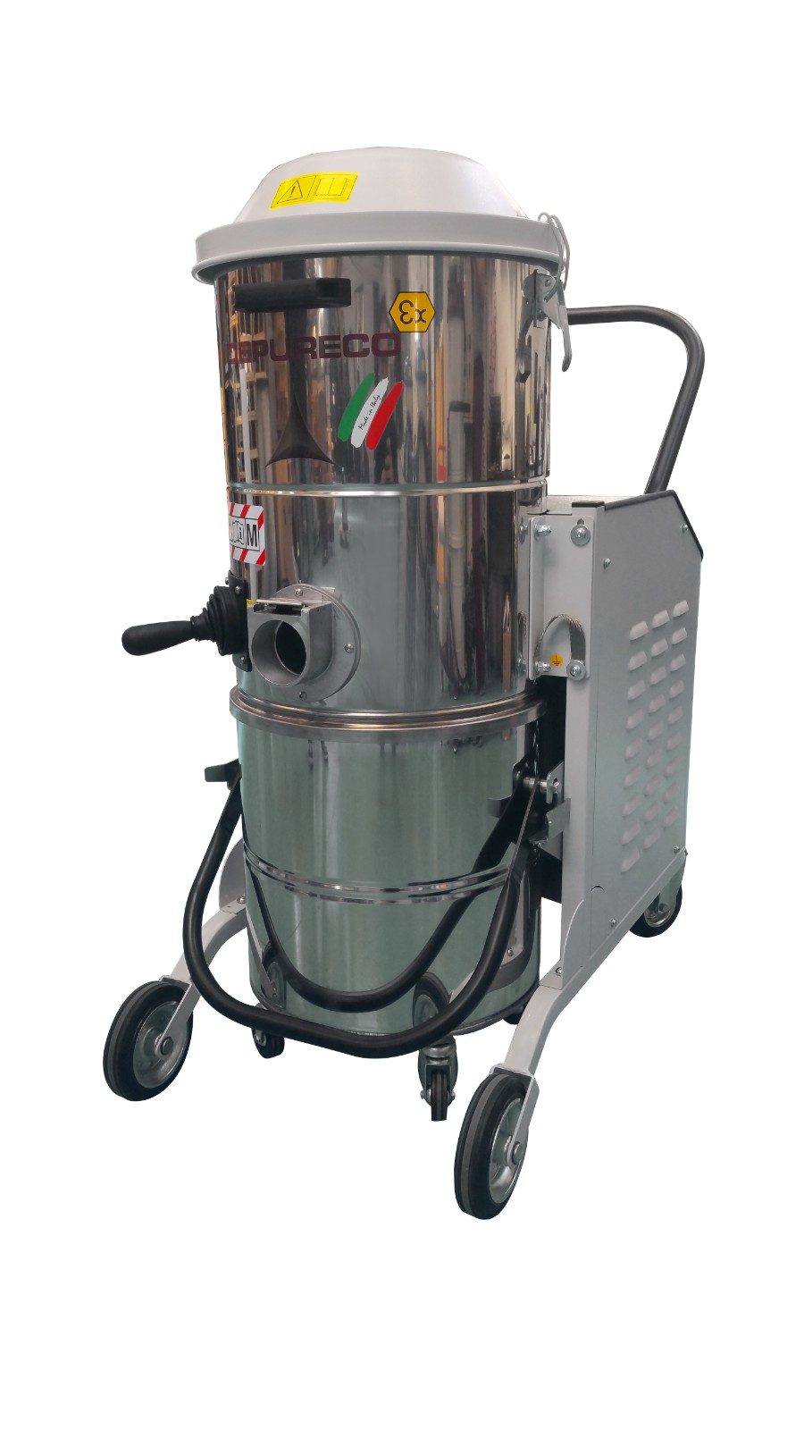 TB UP 是一款緊湊型工業(yè)真空吸塵器,配有側(cè)通道渦輪機,背景為堅固的金屬外殼。渦輪機具有標(biāo)準(zhǔn)安裝的斷路器安全閥。過濾室包含一個大面積聚酯過濾器,經(jīng)認(rèn)證為M級(1微米過濾效率),非常適合處理精細(xì)灰塵。