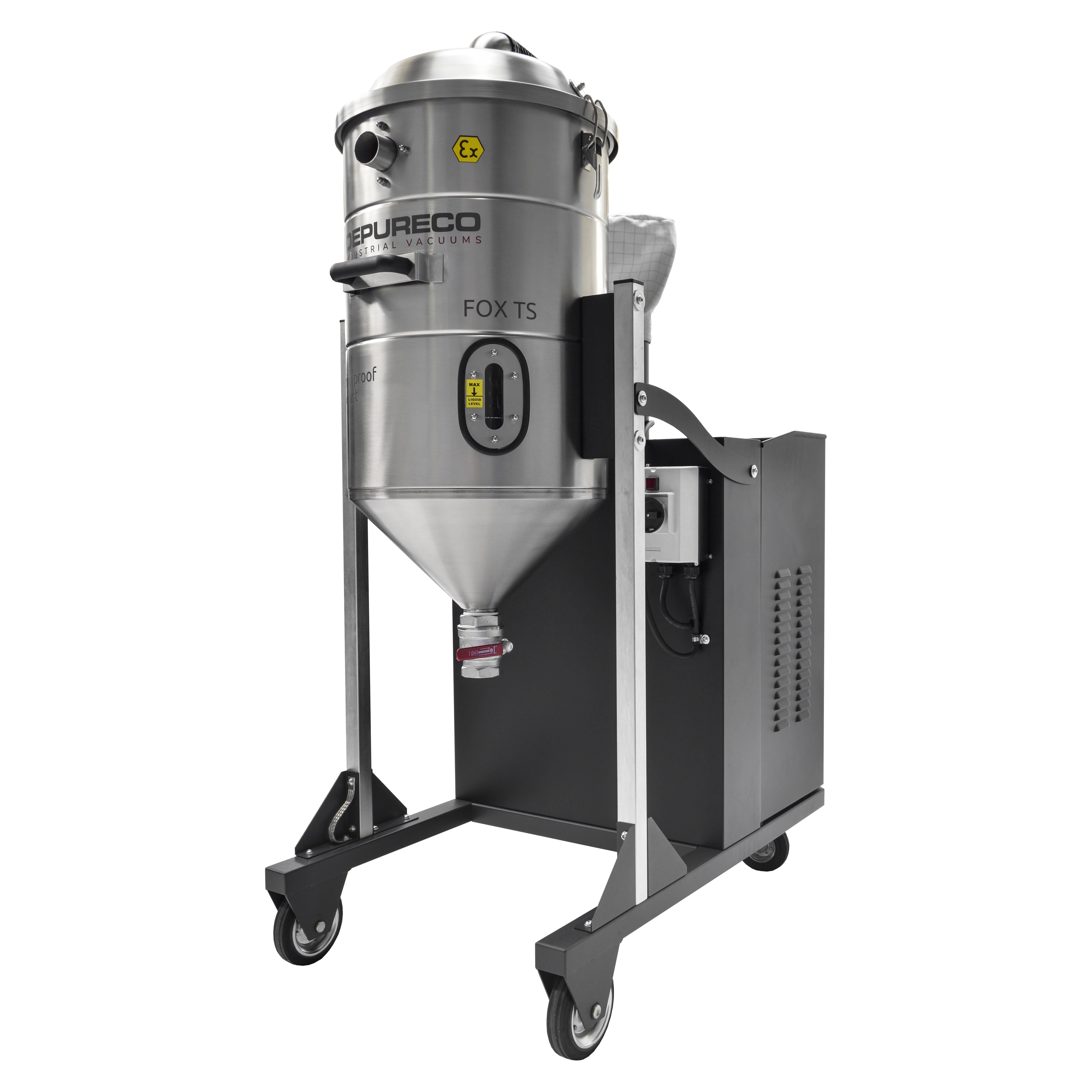 FOX TS Z22是一款經(jīng)過ATEX認證的IIIC工業(yè)吸塵器,因此適用于處理導電金屬粉末。真空由ATEX認證的側(cè)通道渦輪機產(chǎn)生,由后殼體保護和靜音。
